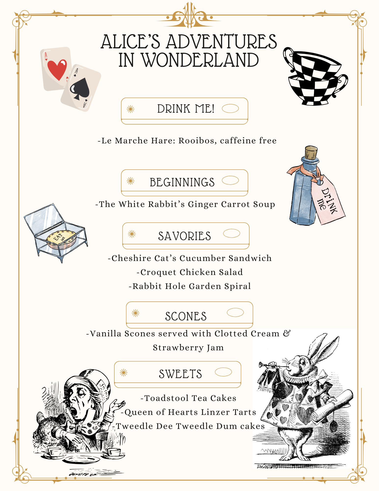 Join us as we trip down the rabbit hole, where surprises abound and impossible things are, well…possible! This is truly the most fun we have all year. Come as you are, but if you are inspired to dress up (as a character or just fancy) you will be entered in our monthly drawing for a complimentary Afternoon Tea for 2.